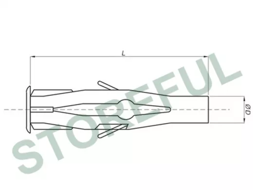 •  Особенности конструкции: при монтаже дюбеля крепление осуществляется с помощью двух крепежных функций: распирания и изгиба