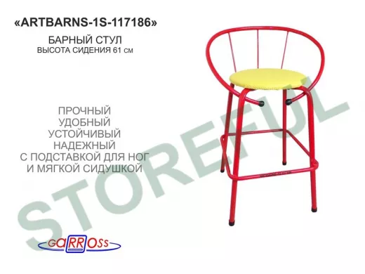 Барный стул "ARTBARNS-1S" органично дополнит интерьер модного заведения или домашней кухни. Стильная модель высотой 0,61 метра устойчиво стоит на четырех опорах с удобными подножками.