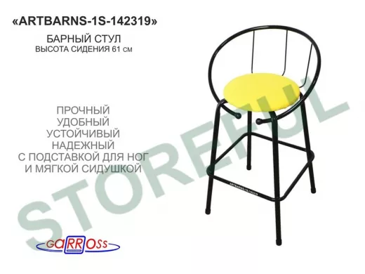 - "ARTBARNS-1S" позволит уютно расположиться, облокотиться на спинку и провести немало приятных минут за коктейлями и беседой. Сиденье удобной формы обито тканью.