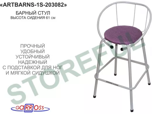 Барный стул "ARTBARNS-1S" органично дополнит интерьер модного заведения или домашней кухни. Стильная модель высотой 0,61 метра устойчиво стоит на четырех опорах с удобными подножками.