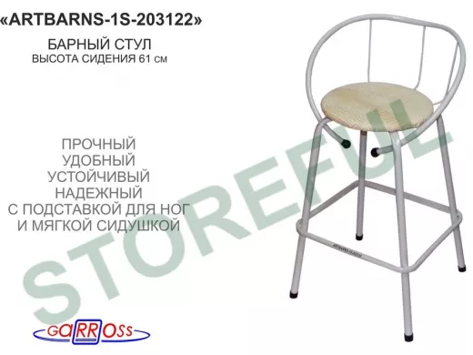 Барный стул "ARTBARNS-1S" органично дополнит интерьер модного заведения или домашней кухни. Стильная модель высотой 0,61 метра устойчиво стоит на четырех опорах с удобными подножками.