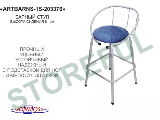 Барный стул "ARTBARNS-1S" органично дополнит интерьер модного заведения или домашней кухни. Стильная модель высотой 0,61 метра устойчиво стоит на четырех опорах с удобными подножками.