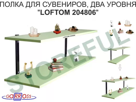 Полка для сувениров, высота 25см, два уровня "LOFTOM 204806" размер 120х30см, чёрный/салатовый
