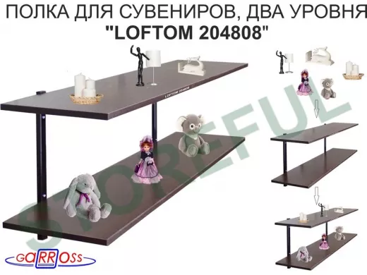 Полка для сувениров, высота 25см, два уровня "LOFTOM 204808" размер 120х30см, чёрный/венге