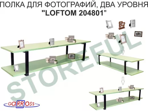 В корзину Купить в 1 клик Полка для фотографий и игрушек, высота 25см "LOFTOM 204801" размер 120х30см, чёрный/салатовый