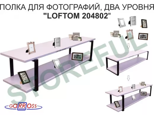 В корзину Купить в 1 клик Полка для фотографий и игрушек, высота 25см "LOFTOM 204802" размер 120х30см, чёрный/лаванда