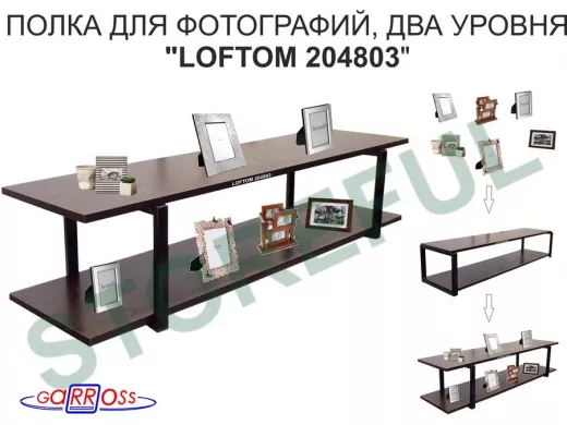 Полка для фотографий и игрушек, высота 25см "LOFTOM 204803" размер 120х30см, чёрный/венге