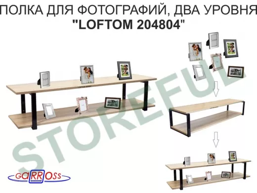 Полка для фотографий и игрушек, высота 25см "LOFTOM 204804" размер 120х30см, чёрный/дуб сонома