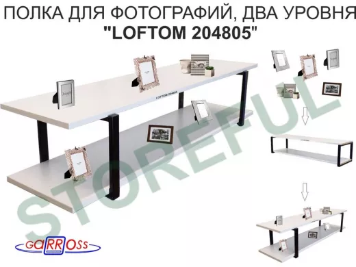 Полка для фотографий и игрушек, высота 25см "LOFTOM 204805" размер 120х30см, чёрный/сосна выбелен.