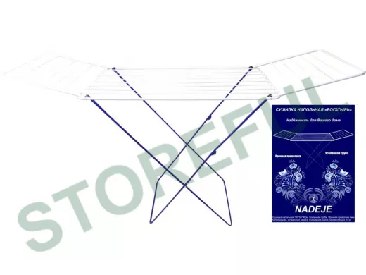 В корзину Купить в 1 клик "БОГАТЫРЬ" NADEJE сушилка напольная БЕЛО-СИНЯЯ 20 метров, усиленная труба, прочная проволока 4мм !