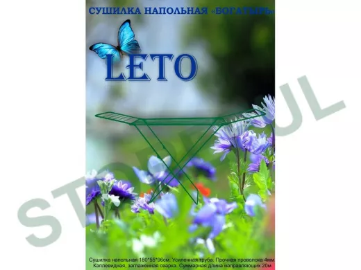 • "БОГАТЫРЬ" LETO сушилка напольная ЗЕЛЁНАЯ 20 метров, предназначена для сушки белья