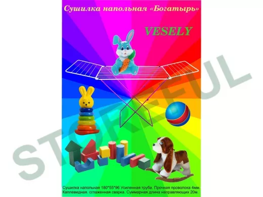 • "БОГАТЫРЬ" VESELY сушилка напольная РОЗОВО-БЕЛАЯ 20 метров, предназначена для сушки белья