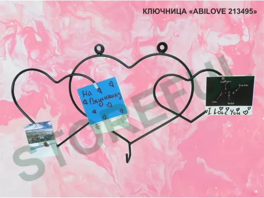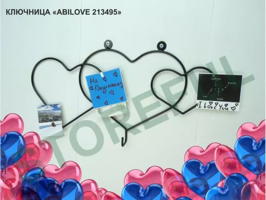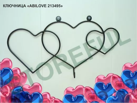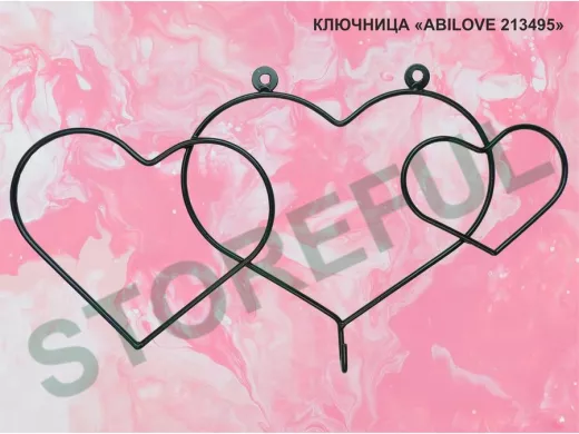Ключница с крючком и 3 магнитами для записок и фотографий, 3 сердца,вешалка, чёрный "ABILOVE 213495"