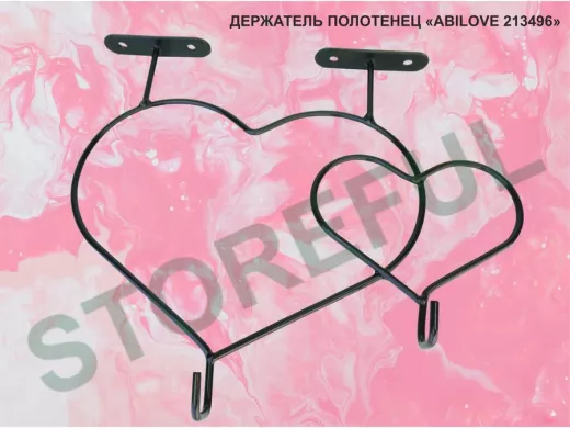 Держатель полотенец под полку, вешалка для вещей, два сердца с крючками, чёрный "ABILOVE 213496"