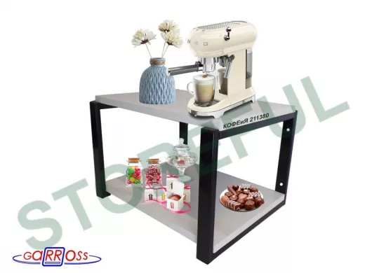 • Полка надежно крепится к стене при помощи анкеров или шурупов с дюбелями, на ней можно разместить Вашу кофемашину, кухонную технику, посуду, специи