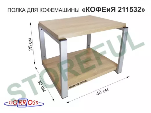 В корзину Купить в 1 клик Полка под кофемашину к стене, высота 27см, серый каркас "КОФЕиЯ 211532" полки 30х40см, дуб