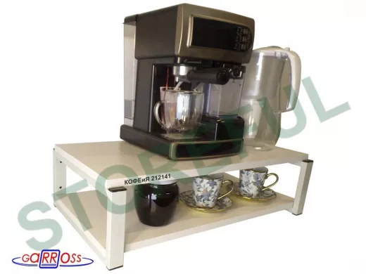 В корзину Купить в 1 клик Полка для кофемашины, серая "КОФЕиЯ 212141" высота 17 см, полки 30х60 см, сосна выбеленная,2 ур.