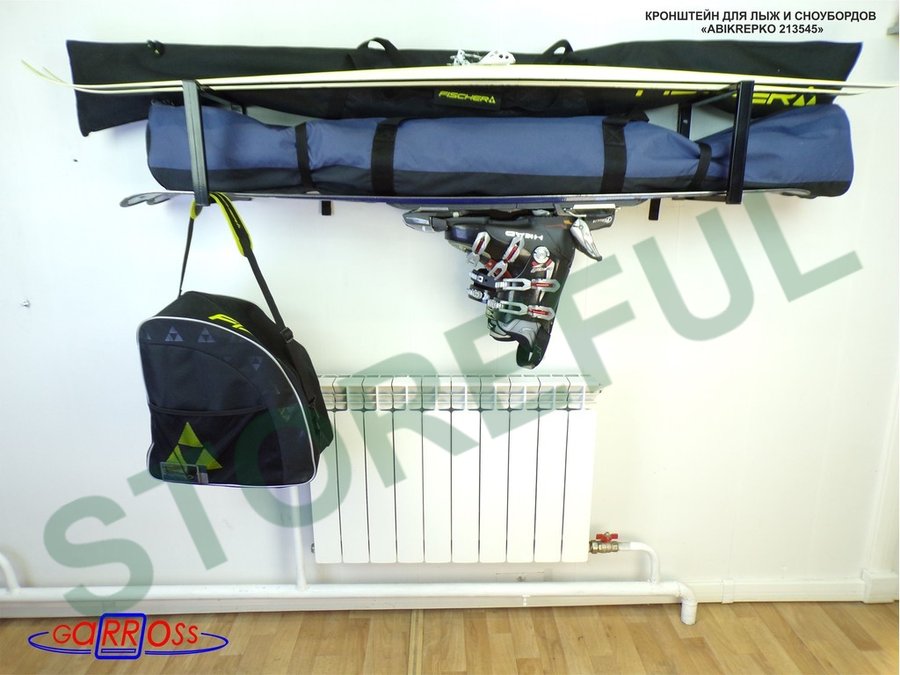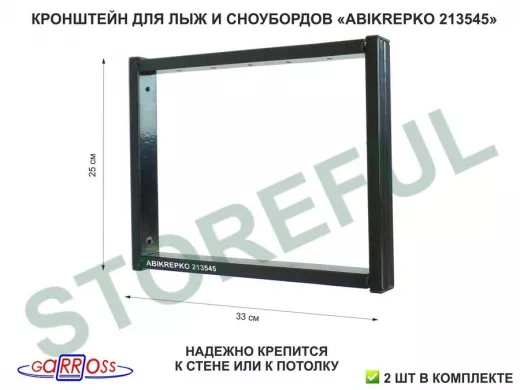 Кронштейны для лыж и сноубордов к стене, потолку, чёрный "ABIKREPKO 213545" 33х25см, 2шт в комплекте