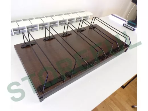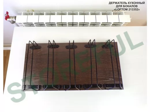 Держатель можно разместить под полкой или внутри шкафа (закрепив его на верхней стенке). Бокалы больше не будут пылиться, а хозяйкам не придется их перемывать. Держатель навесной для бокалов устанавливается легко - крепится к полке.