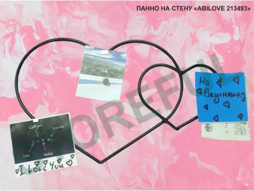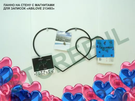 Система держателя выполнена в виде двух сердечек, которую можно оформить в виде свадебного фотоальбома, стены желаний, карты мечты.
