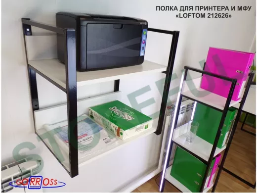 В корзину Купить в 1 клик Полка под принтер и подставка для МФУ, высота 54см черная "LOFTOM 212626" 2 уровня, 35х54см, сосна