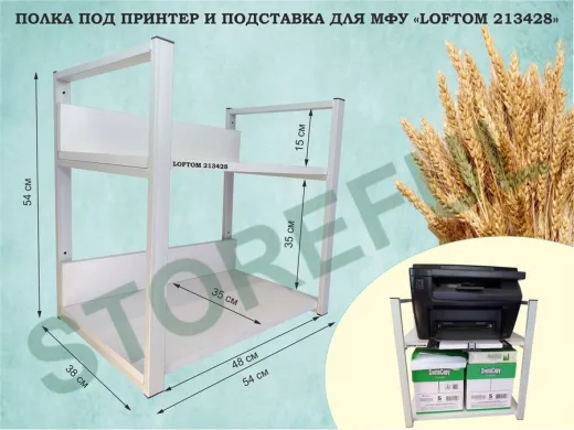 В корзину Купить в 1 клик Полка под принтер и подставка для МФУ, высота 54см серый "LOFTOM 213428" 2 уровня, 35х54см, сосна