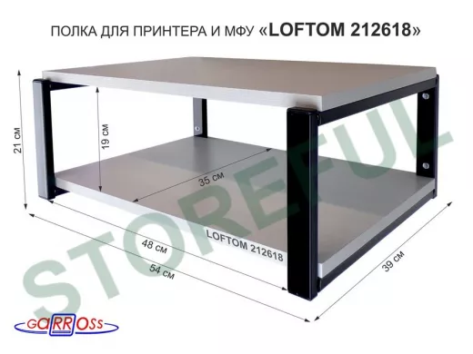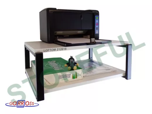 Полка для принтера, подставка для МФУ, 21см черный "LOFTOM 212618" две полки 35х54см, сосна выбелен.