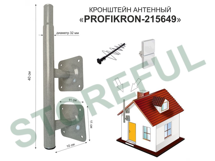 В корзину Купить в 1 клик Кронштейн антенный, вылет 0,1м, обжатая труба "PROFIKRON-215649" серый, вверх 0,4м, диаметр 32мм