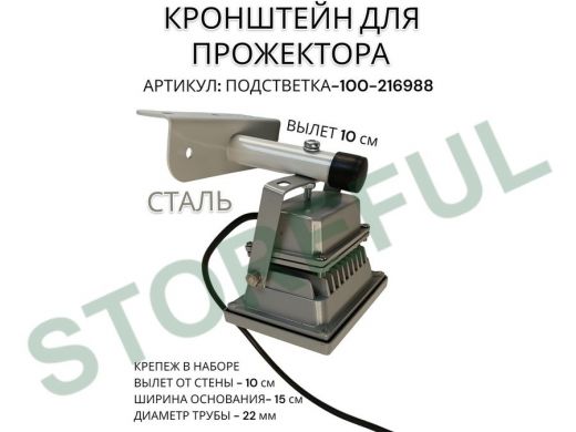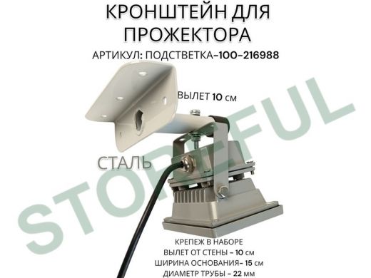 Кронштейн для прожектора "ПОДСВЕТКА- 100-216988" серый с уголком на рекламные щиты, вылет 0,1м