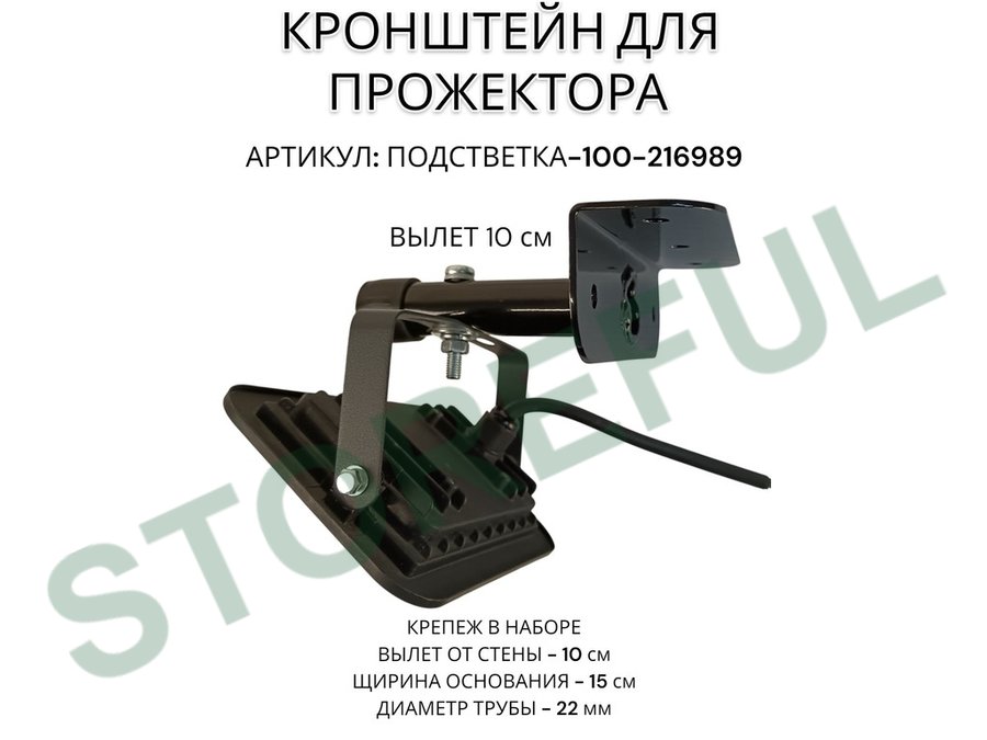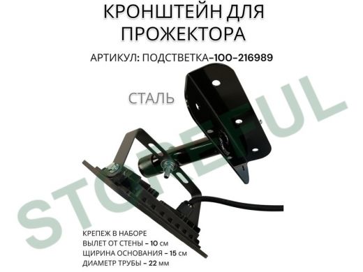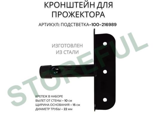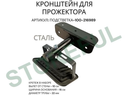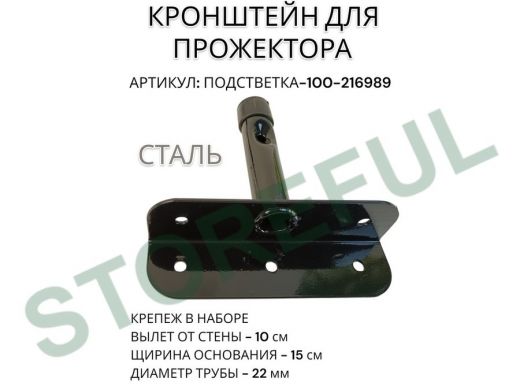 Кронштейн для прожектора "ПОДСВЕТКА- 100-216989" черный с уголком на рекламные щиты, вылет 0,1м