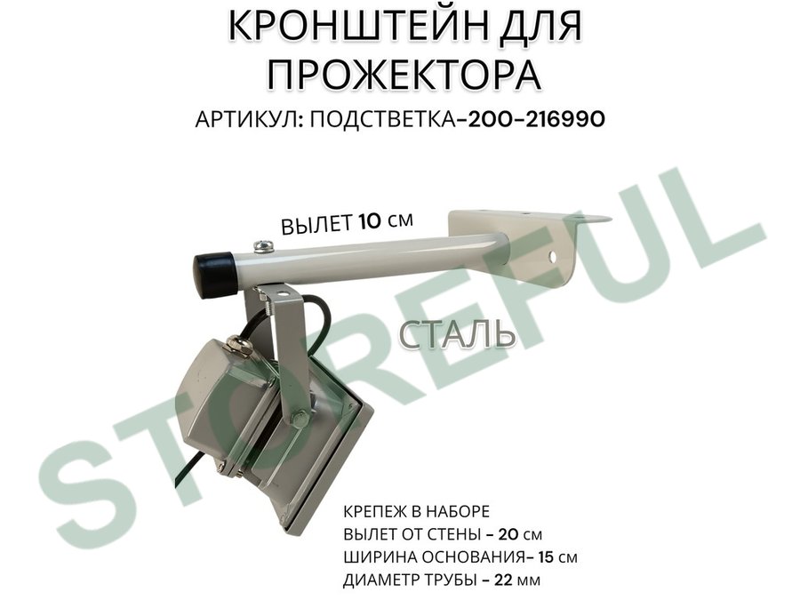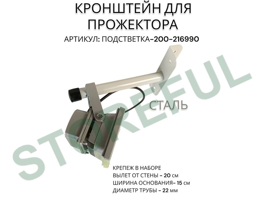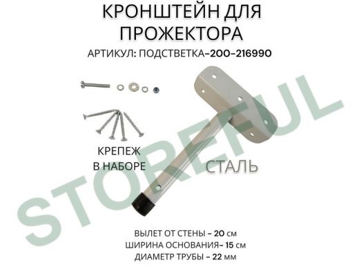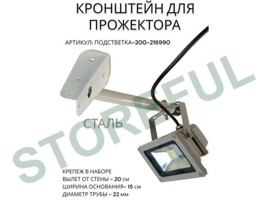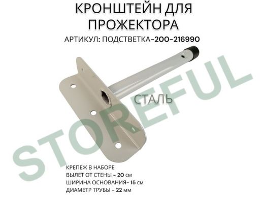 Кронштейн для прожектора "ПОДСВЕТКА- 200-216990" серый с уголком на рекламные щиты, вылет 0,2м