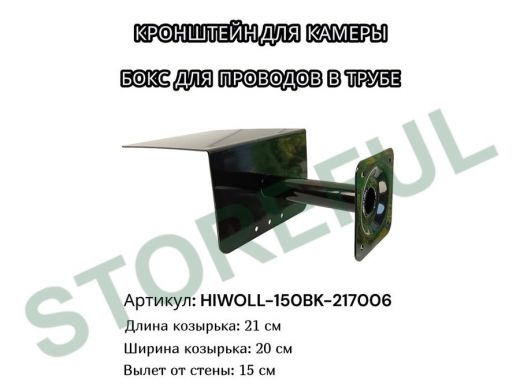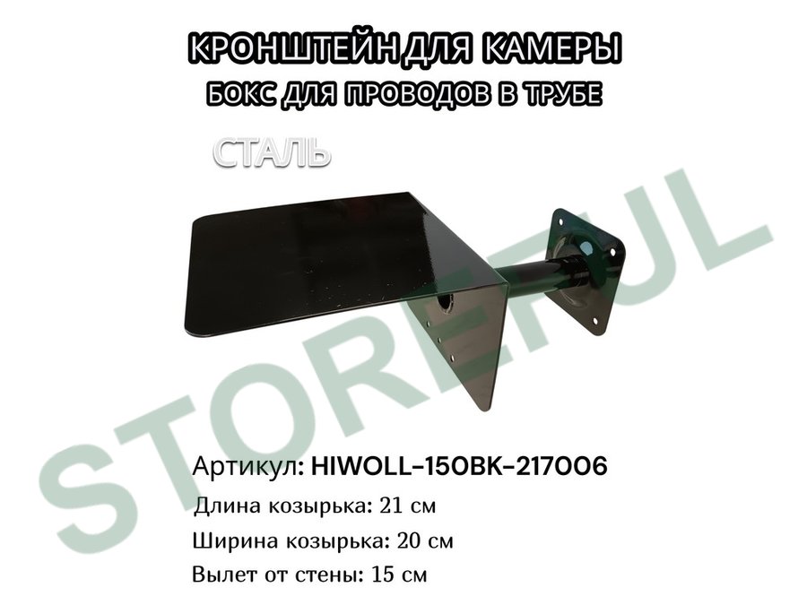 Кронштейн для камеры и прожектора с козырьком "HIWOLL-150BK-217006" черный, вылет 15см, сталь