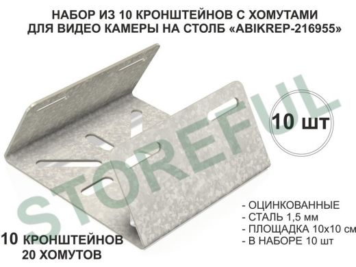 Набор 10шт. Кронштейн оцинкованный для камеры наблюдения с хомутами на столб "ABIKREP-216955"