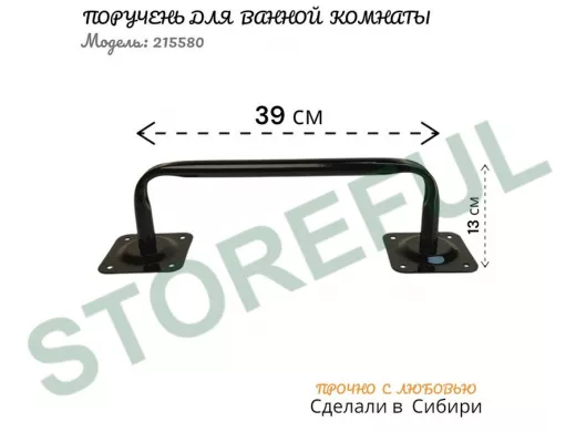 Поручень для туалета и ванной комнаты к стене высота 13 см ширина 39 см "LOFTOM 215580" чёрный