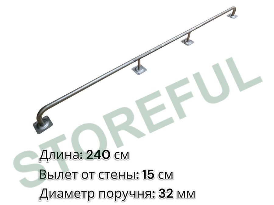 В корзину Купить в 1 клик Поручень пристенный для зданий, длина 240см вылет 15см "ABIKREP-217055" серый, 4 опоры, диаметр 32мм