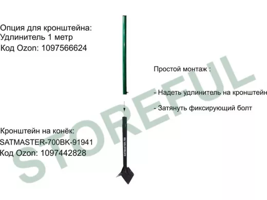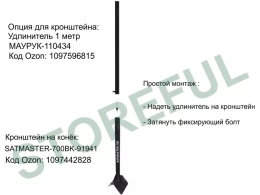 Кронштейн антенный усиленный "SATMASTER-700" ЧЁРНЫЙ высота 0,7м; диаметр 50мм; на конёк, удлиняемый