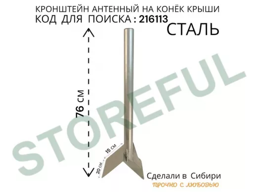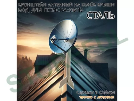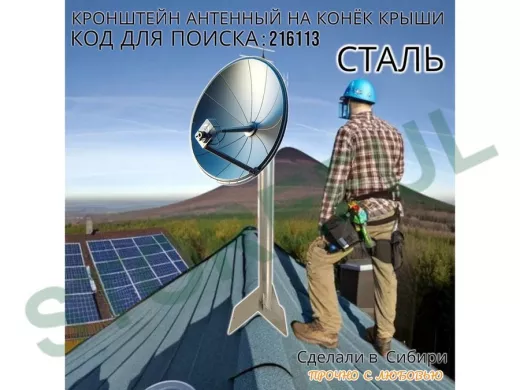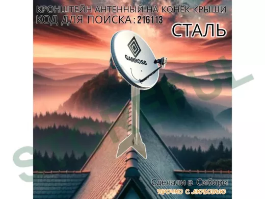 • Кронштейн усилен 3-мя стальными косынками, это позволяет получить большую прочность для крепления спутниковых тарелок 0,6м и любых других антенн.
