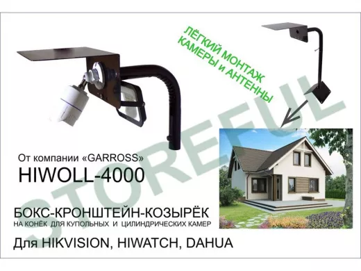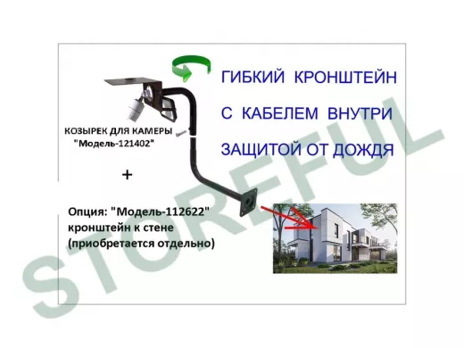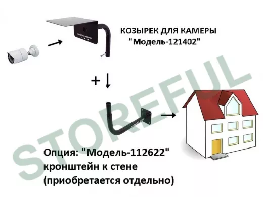 - Кронштейн с козырьком предназначен для крепления видеокамер и защиты их от дождя, снега и солнца.