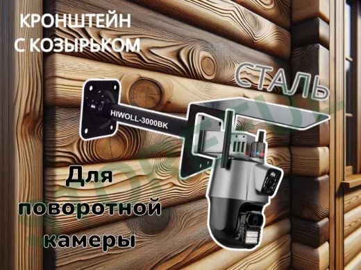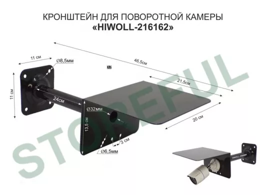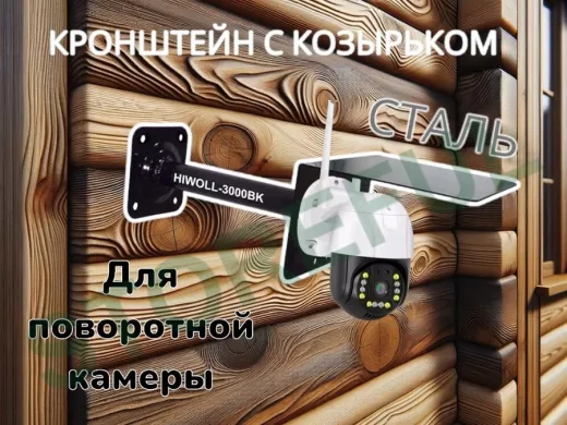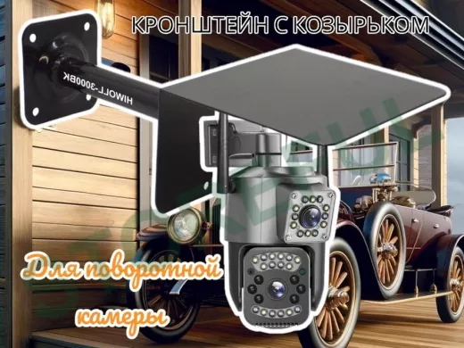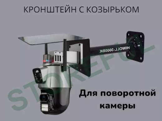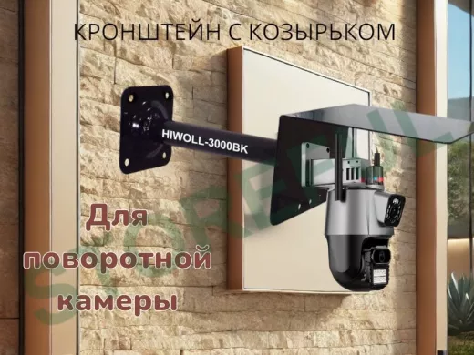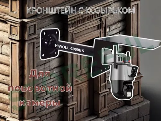 Кронштейн для поворотной камеры с вылетом 25см и козырьком для защиты "HIWOLL-216162" черный, сталь