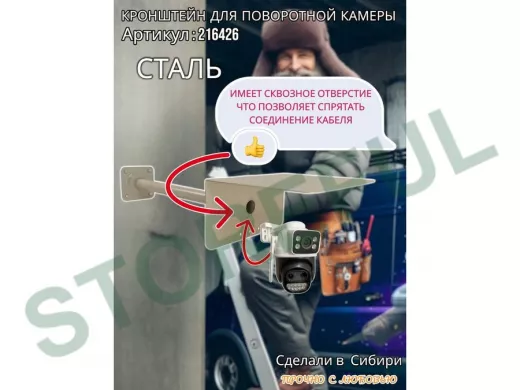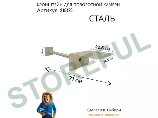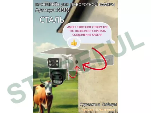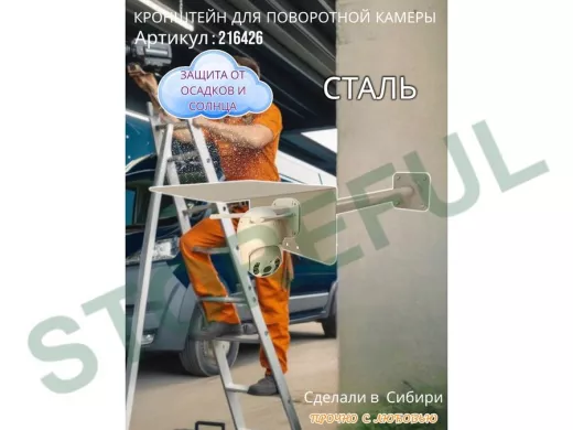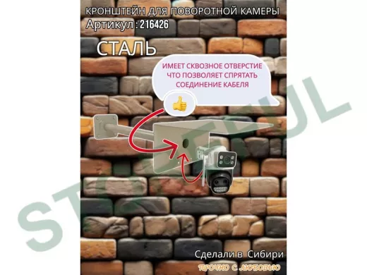 • Стальной кронштейн позволяет вынести камеру от стены на 50 см.