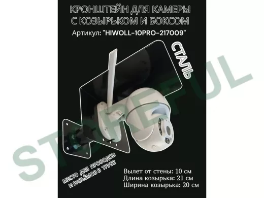 В корзину Купить в 1 клик Кронштейн с боксом и козырьком для видеокамеры "HIWOLL-10PRO-217009" черный, вылет 10см, сталь