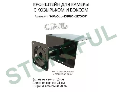 Кронштейн с боксом и козырьком для видеокамеры "HIWOLL-10PRO-217009" черный, вылет 10см, сталь