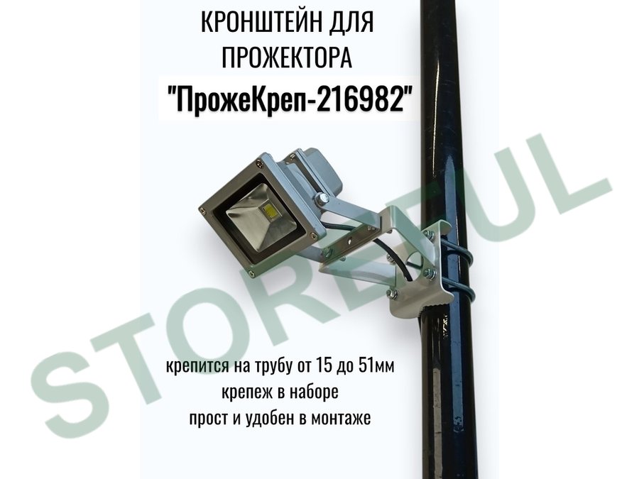 • Кронштейн усиленный предназначен для крепления светодиодных прожекторов на трубе диаметром от 15 до 51мм.