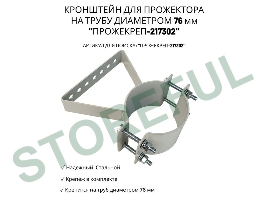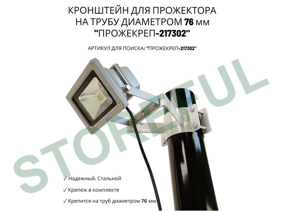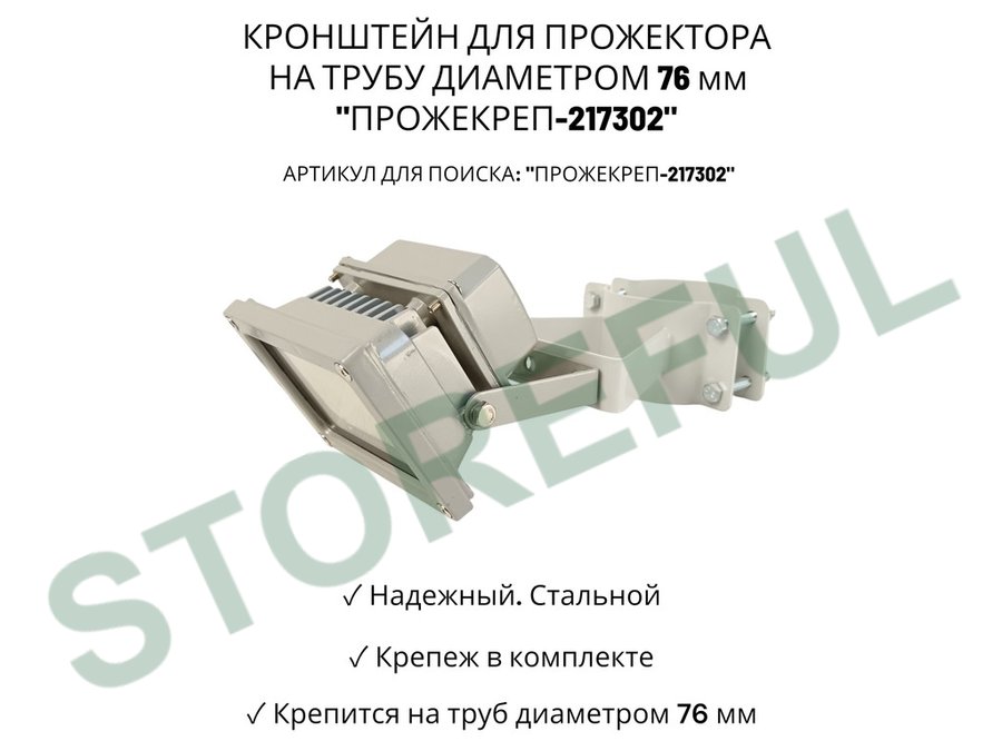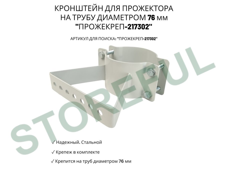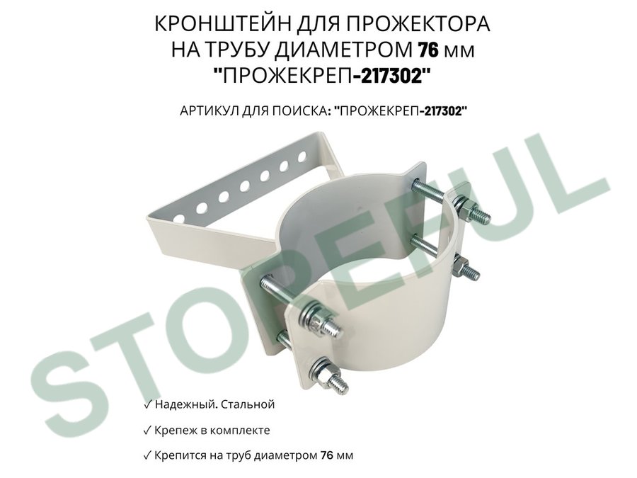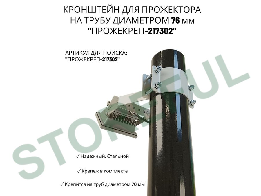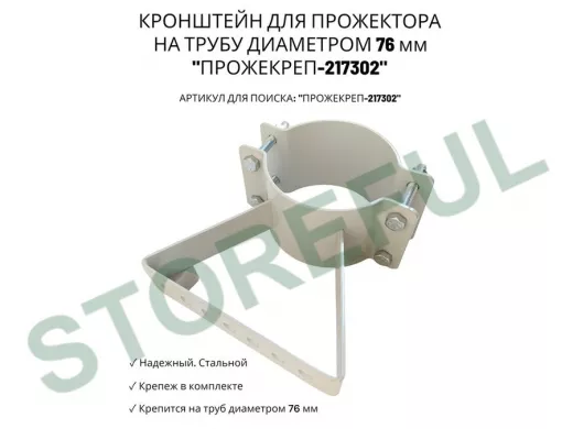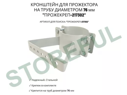 • Кронштейн усиленный предназначен для крепления светодиодных прожекторов на трубе диаметром 76 мм.На трубу крепится с помощью болтов с гайками.