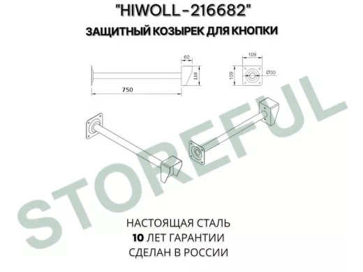 В корзину Купить в 1 клик Стальной защитный козырек для кнопок выхода с вылетом от стены 75см "HIWOLL 216682" серый, 8х11см