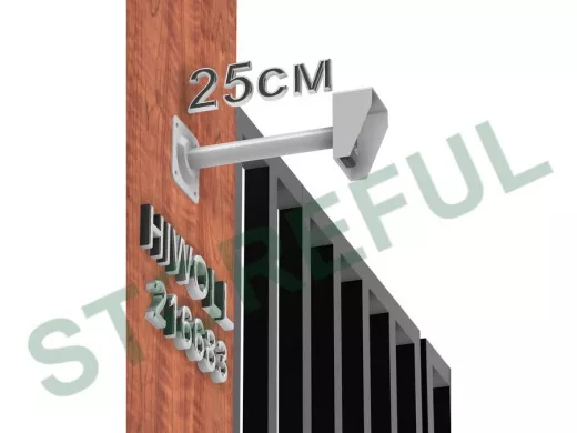 • Вылет 25 см позволяет оттянуть кнопку выхода дальше от калитки.
