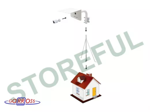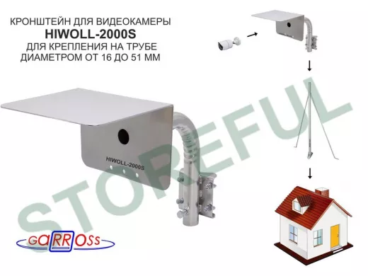 Конструкция кронштейна имеет сквозное отверстие у козырька (где крепится камера), что позволяет надежно спрятать соединения кабеля. Плотный, непрерывный сварочный шов позволяет защищать кабель от внешних воздействий (дождь, снег, ветер), что гарантирует защиту соединения между камерой и кабелями