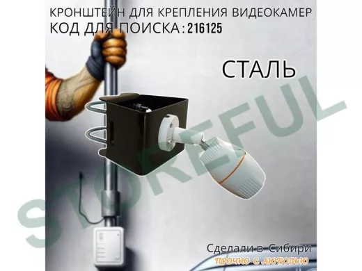 • Универсальный  усиленный кронштейн предназначен для крепления видеокамеры на трубе диаметром от 15 до 51мм или на столбе.