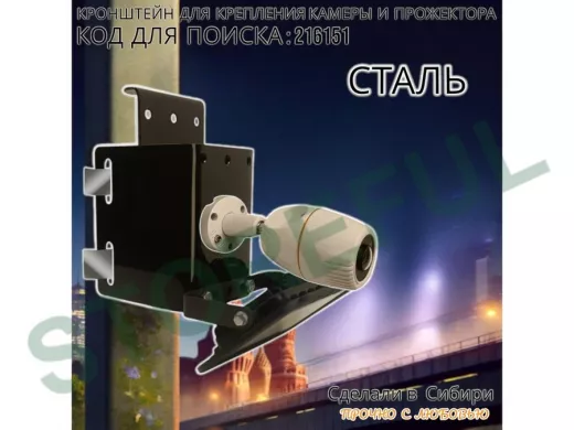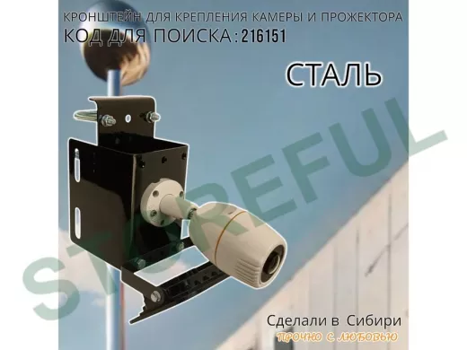 • Универсальный  усиленный кронштейн предназначен для крепления прожектора или камеры на трубе диаметром от 15 до 51мм или на столбе.