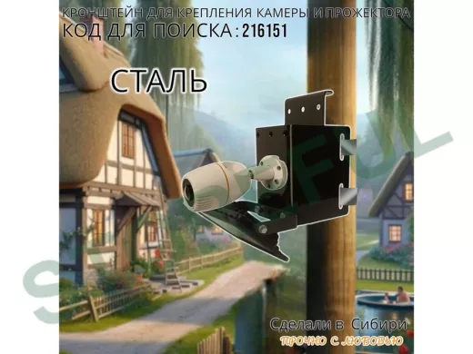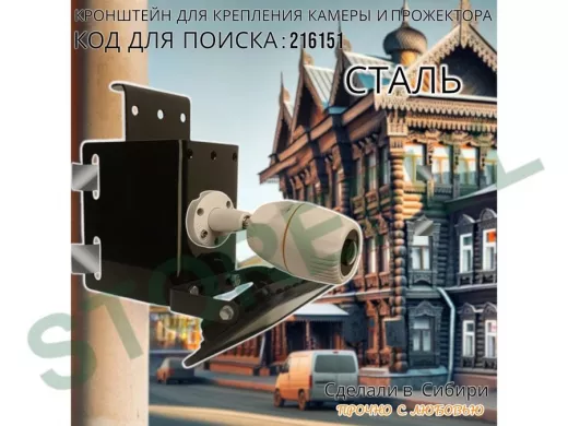Кронштейн универсальный на трубу или столб для камеры или прожектора "ПРОЖЕКРЕП-216151" сталь,черный